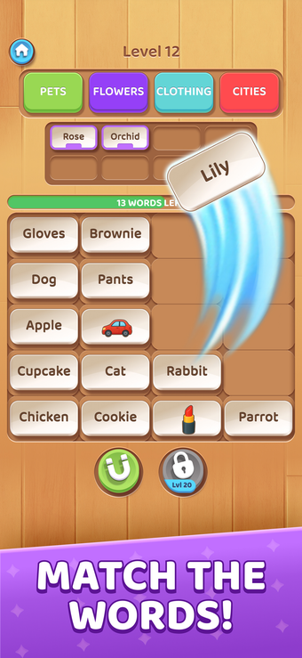 Word Match Connect är ett lugnt och stimulerande ordspel för iPhone som utmanar spelare att matcha ord efter olika teman. Spelet erbjuder hundratals handgjorda nivåer utan tidspress, vilket gör det möjligt för spelare att ta sin tid och njuta av en avslappnande spelupplevelse. Temana sträcker sig från färger och djur till mer komplexa ämnen som mode, vetenskap och rymden, vilket ger en varierad och intellektuell utmaning.